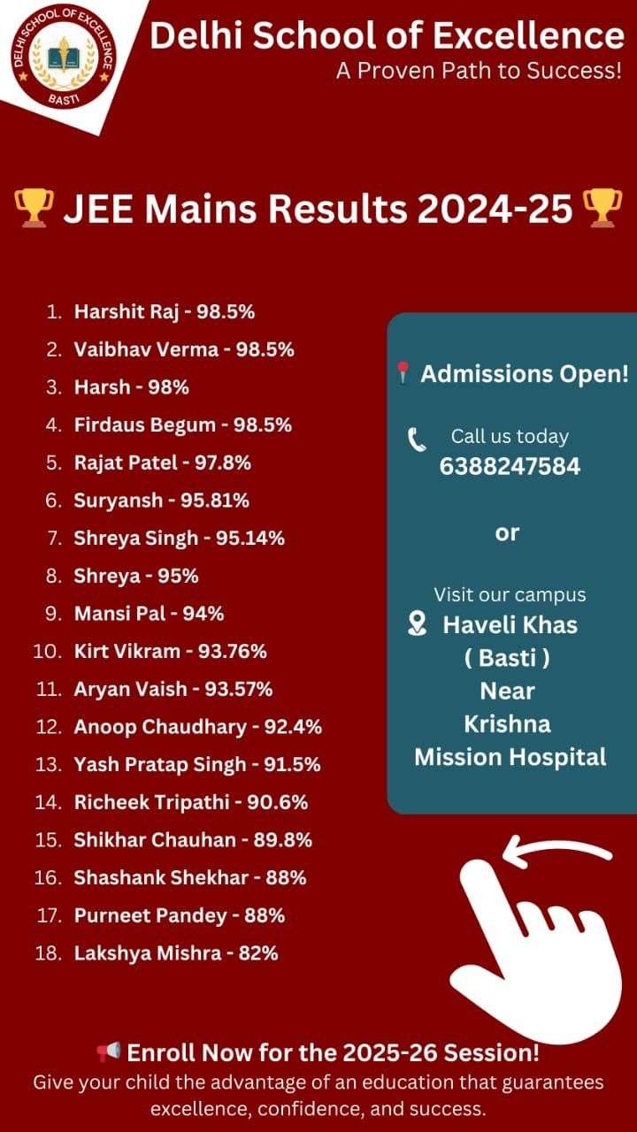 Honoring our JEE achievers whose persistence, focus, and brilliance have paved the way to prestigious engineering institutions. They embody the spirit of hard work and ambition at DSE.